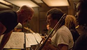 Finally, one aspect of this film that I found really intriguing was its sparse approach to ambience/score. While most films rely heavily on frequent occurrences of either score or soundscape work to highlight a given mood, Whiplash rarely uses either, and this lack of background ambience creates an uptight atmosphere in and of itself. Instead, most of the score comes in the form of the band performing jazz numbers, and it's the scenes before these performances that are the quietest in the film. In these scenes, the only sounds are those of the performers preparing: reeds being adjusted, the shuffling of chart papers, chairs squeaking etc., and this evokes a sense of tension that perfectly mirrors the palpable anxiety felt before a big performance especially in such a competitive context.
